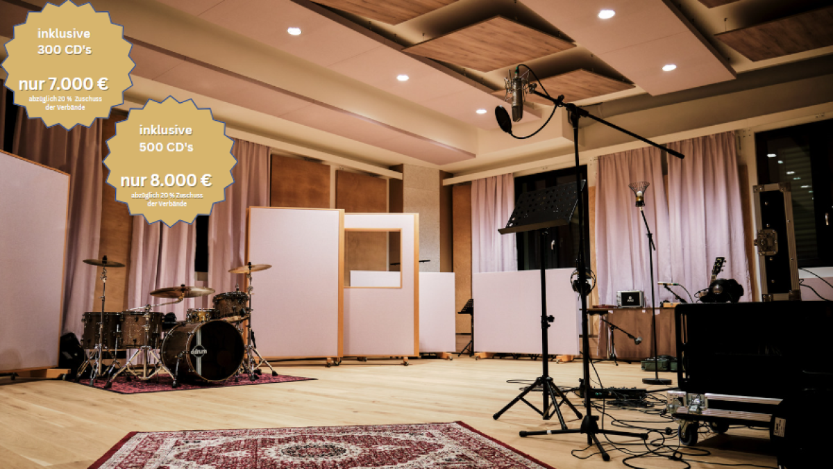 Wer ein komplettes Album aufnehmen möchte, ist hier an der richtigen Stelle. Wir haben zwei Pauschalangebote ausgearbeitet, die am Ende noch mit 20 % vom ASM bezuschusst werden: